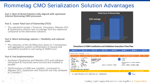 The Vimachem Level 3 Serialization Site Manager (SSM) is now the world’s biggest independent Level 3 with installations in 35 sites across the globe (Europe, USA , Asia and Australia) and managing 150+ packaging lines.